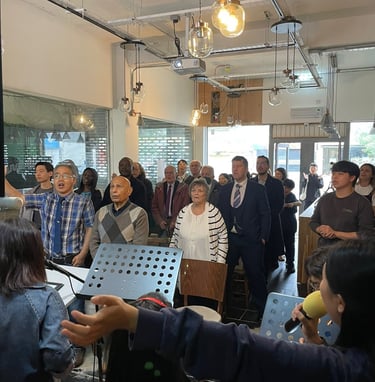 Join us for our Sunday services, Wednesday Bible study, Street Evangelism, Korean language school, and enjoy a cup of coffee at our coffee shop 'Café ARK'. Experience a diverse and welcoming community where people from all nations come together to worship and grow in their faith.